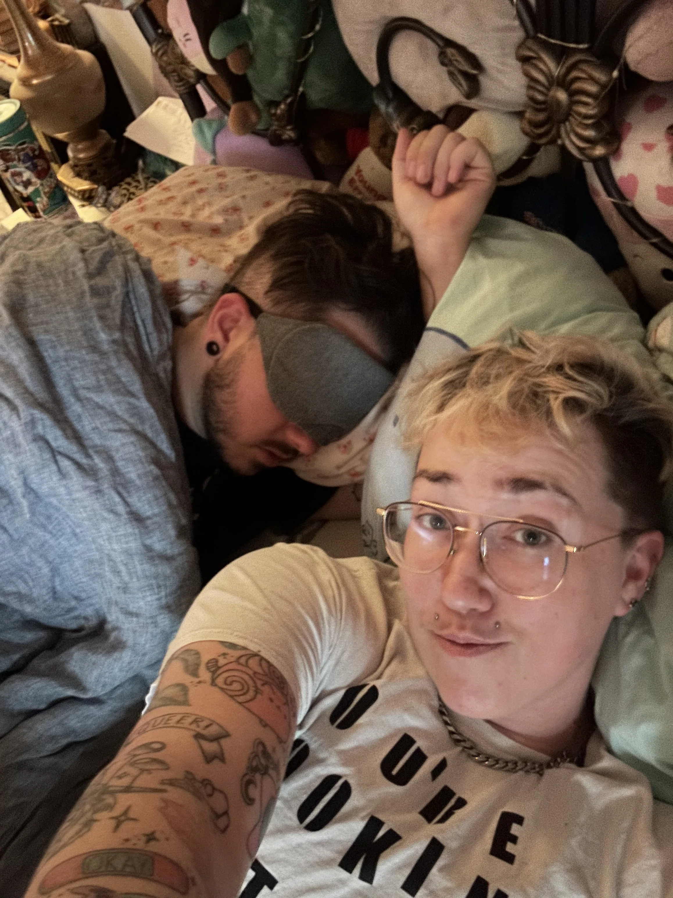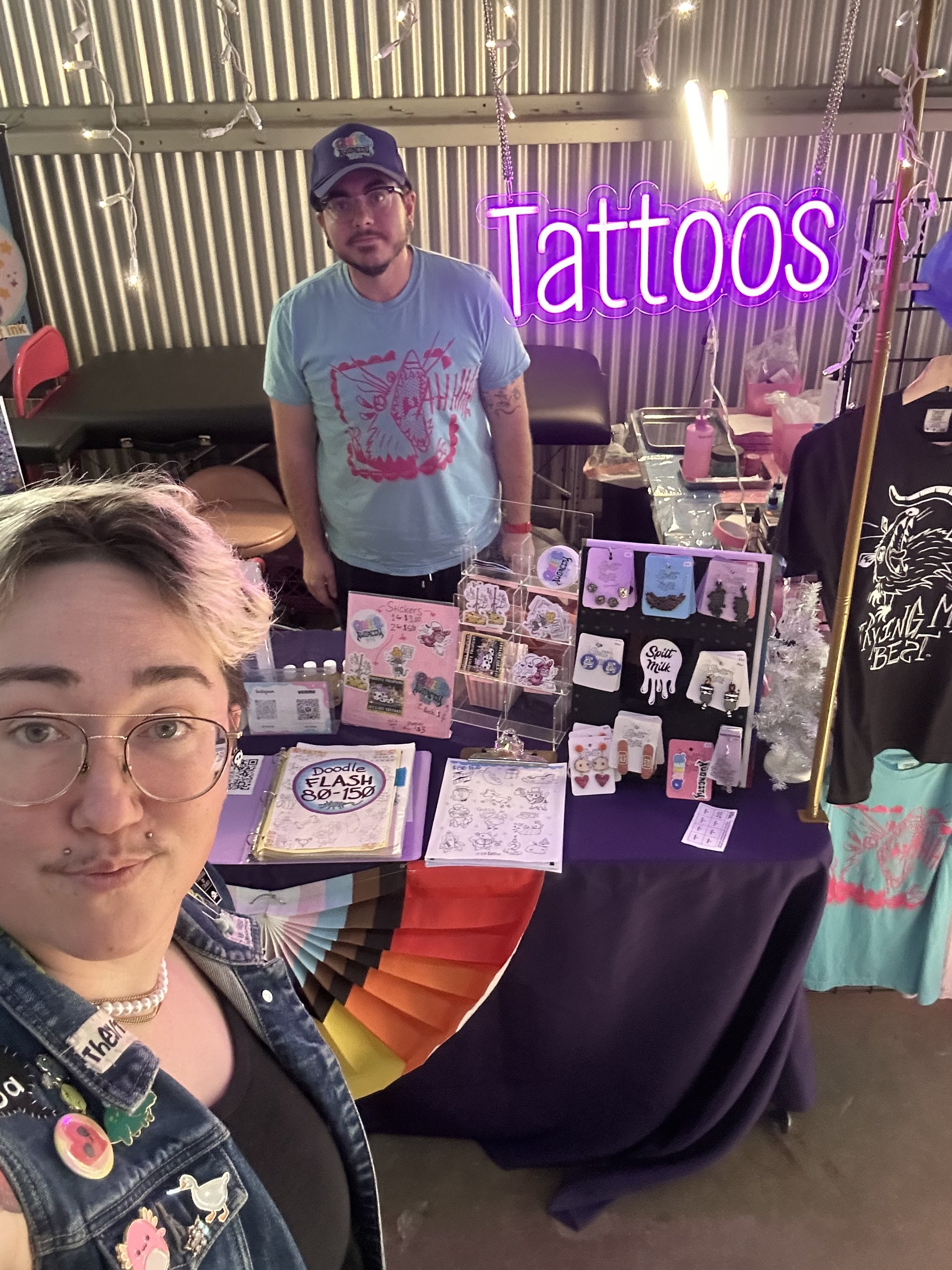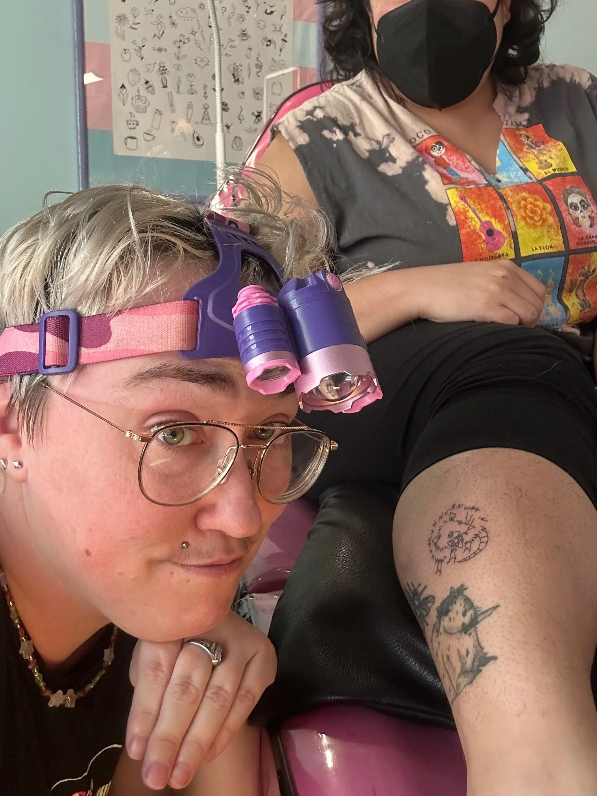 When Sunny is not tattooing, they are likely hanging out with their kiddos, playing D&D, using power tools, or petting their goats.